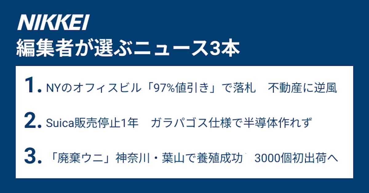 NYビル97%値引き・Suicaなき訪日客・「廃棄ウニ」養殖 – 日本経済新聞
