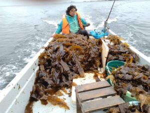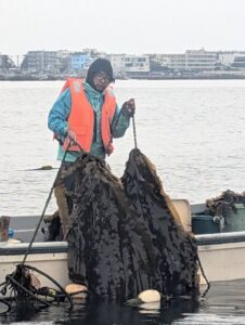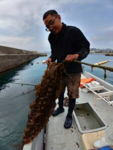 くぼたマリンファームでも1月から養殖をはじめていたわかめと昆布の収穫を行いました。