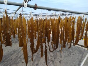 収穫したわかめと昆布は長期保存できるよう乾燥や塩蔵の加工をし、